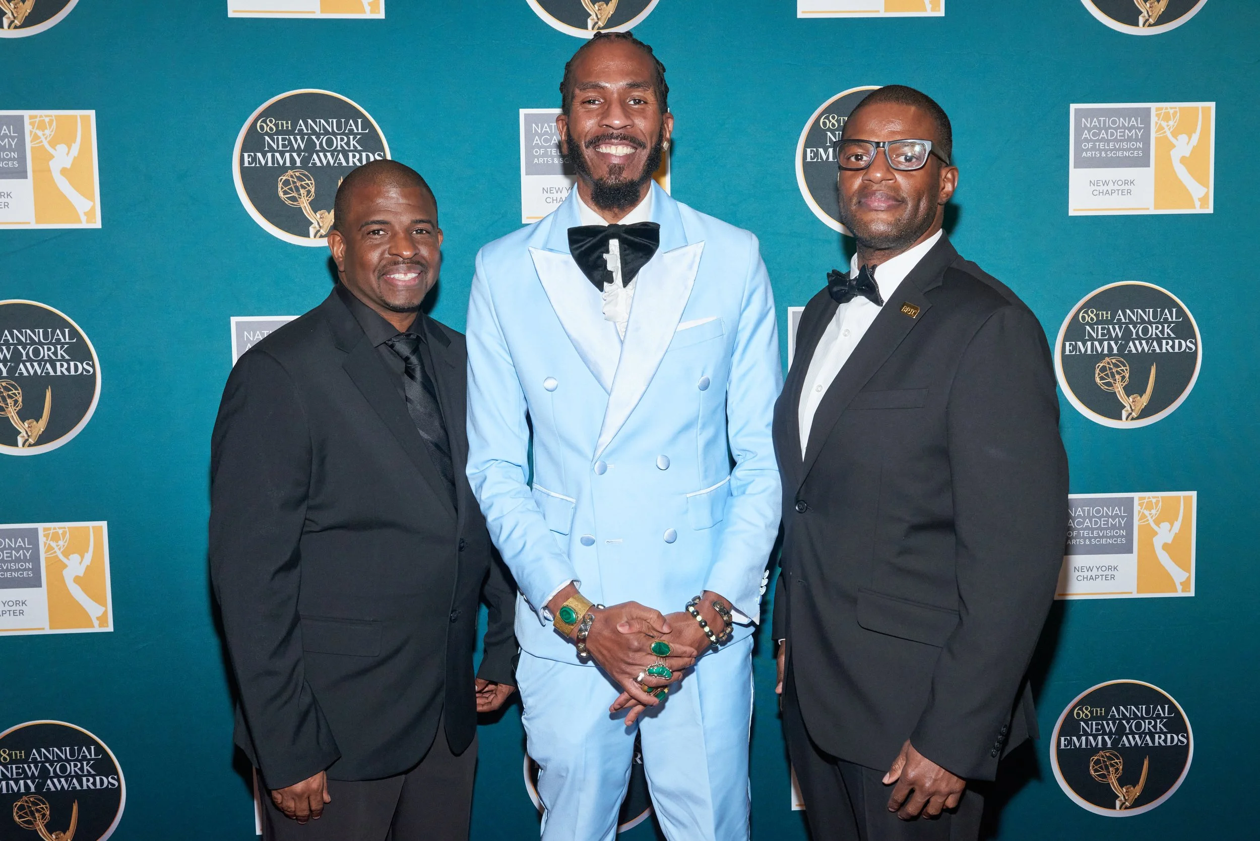 MisterBain at the Emmy’s ceremony, pictured with Leon Taylor and David Francois of BRIC and Gwen Carr, mother of Eric Garner.